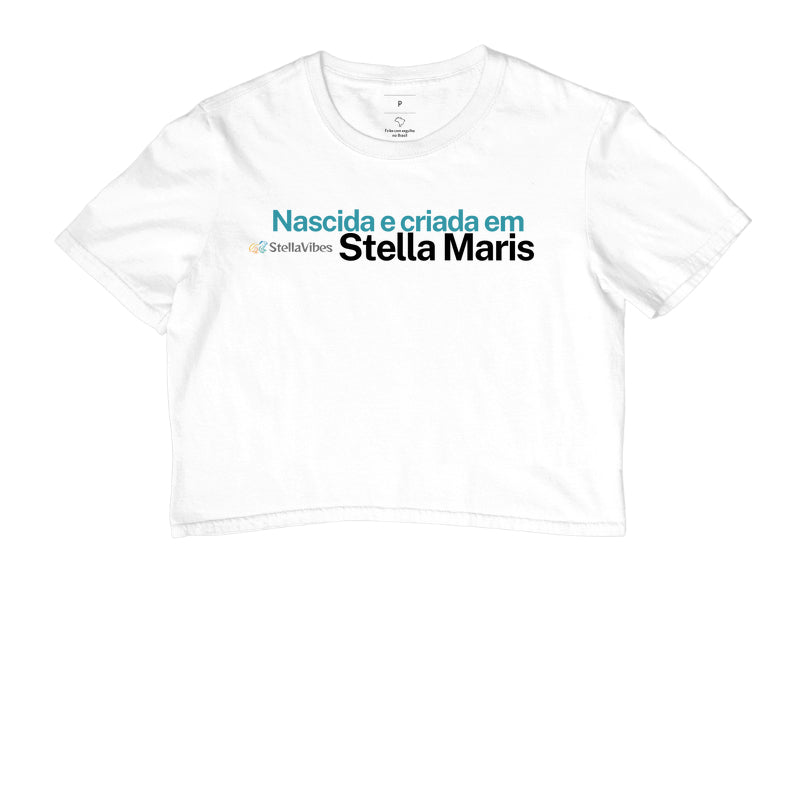 Cropped Nascida e Criada em Stella Maris (Branca / Cinza)